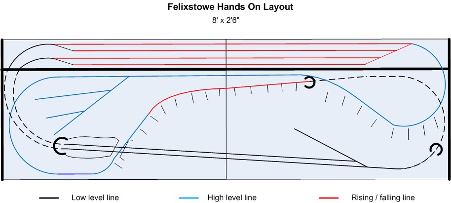 As planned the 4 road rear fiddle yard (can be split as well) should give plenty of variety and the visual run will give a decent long run, and hopefully trains under / over bridges and in / out of tunnels should keep youngsters entertained.