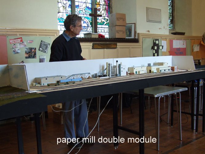 For this event we saw the first appearance of a double module. this was courtesy of Graham Elliot, who some of you will know from his articles in the N gauge journal and a mixture of UK and American layouts that have appeared on the exhibition circuit. Graham has produced a model of a paper mill, which whilst still under construction the model includes a number of impressive scratch built buildings. The remainder of the overall layout was constructed form the usual selection of modules, some of which were sporting new / improved scenic features.