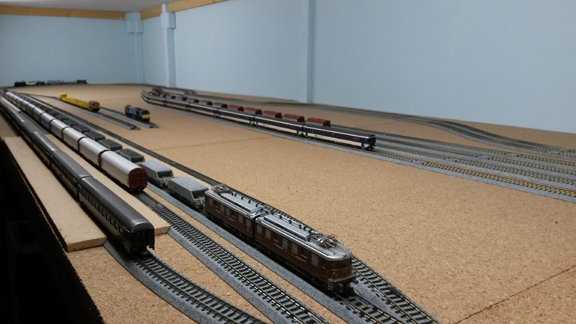 As some of you may know, Kevin’s new layout framework has been completed. On the lower level we have also been able to lay the track and power, so the points all work and trains can now run.